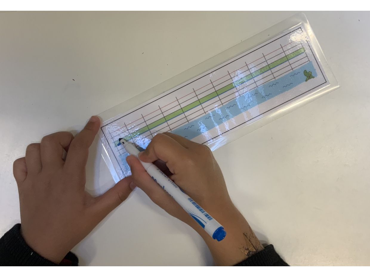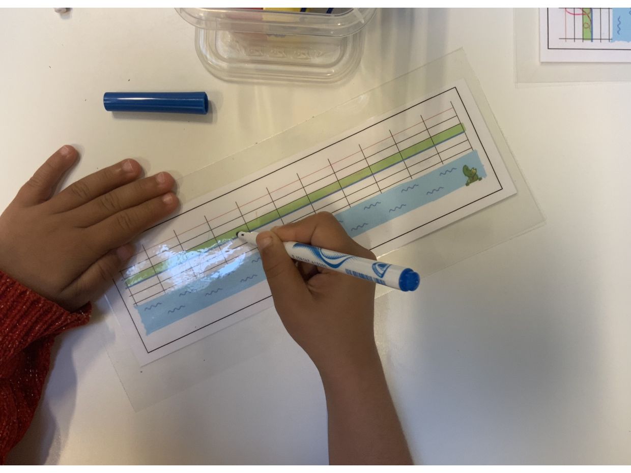 Je parle souvent en formation de l'importance de la posture dès le plus jeune âge, avec la nécessité de prendre l'habitude pour l'enfant de placer sa main sous sa ligne d'écriture. Le lignage "croco" est une manière ludique d'automatiser cette position. En inclinant l'ardoisette, l'enfant place naturellement sa main en dessous de la rivière des crocodiles.