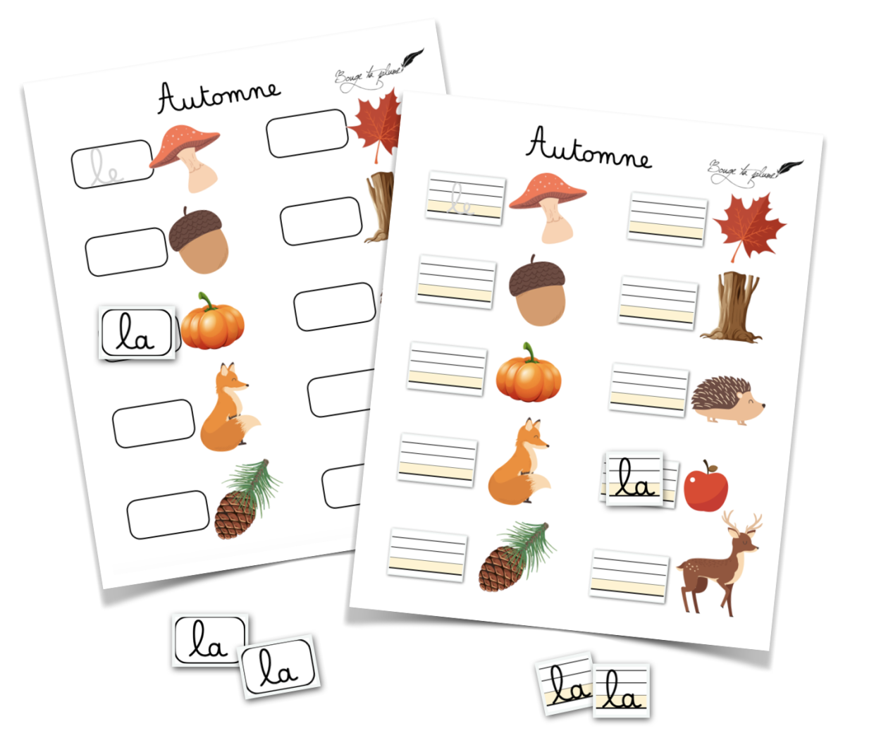 En bas de page se trouvent les étiquettes "la" à coller, pour les mots féminins.